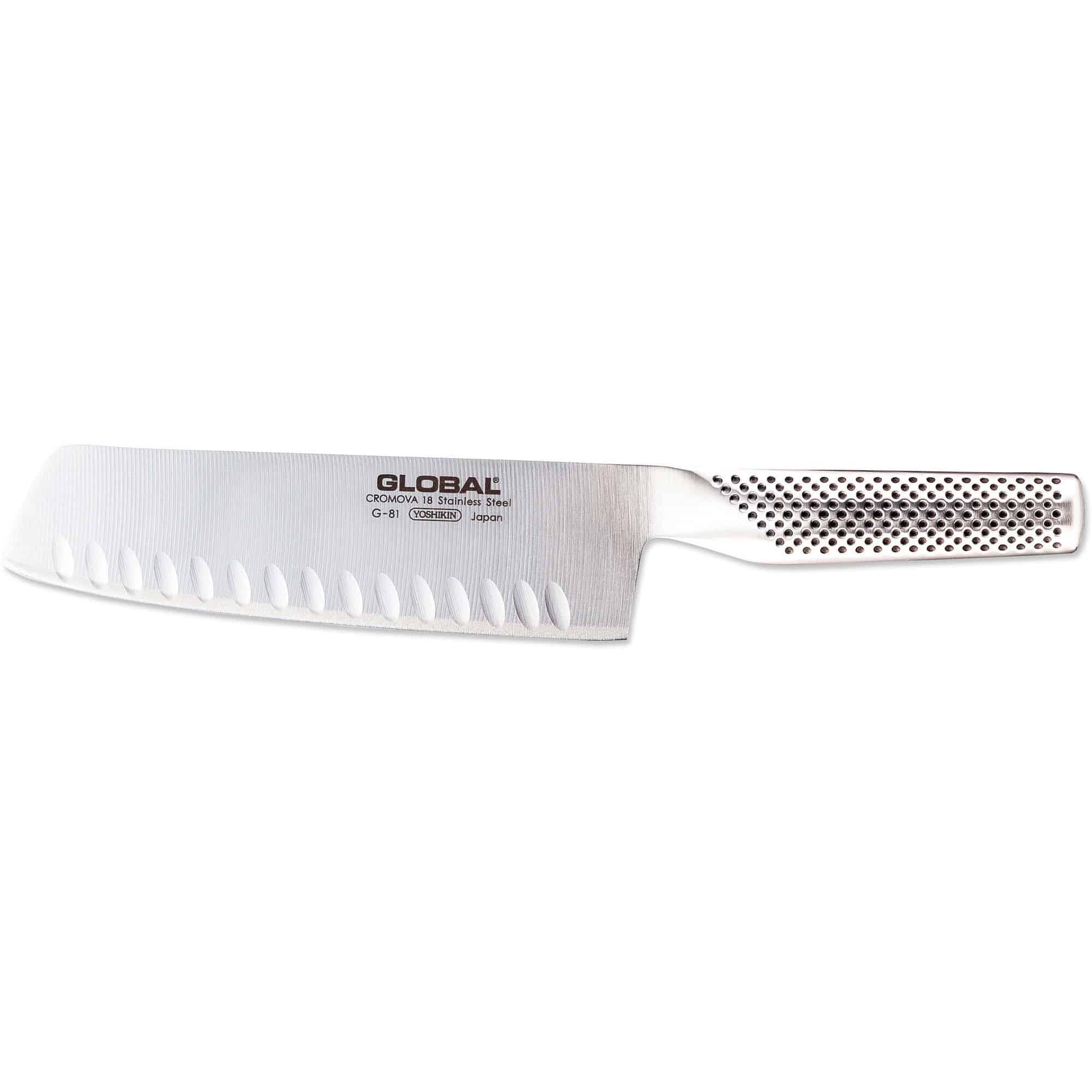 G-81 grøntsagskniven fra Global er unik, fordi den har et granton-skær, og den sikrer således, at de råvarer, du skærer, nemt slipper bladet for en god brugeroplevelse. Kniven er udført i rustfrit stål, der er utrolig slidstærkt, hvilket sikrer, at skar